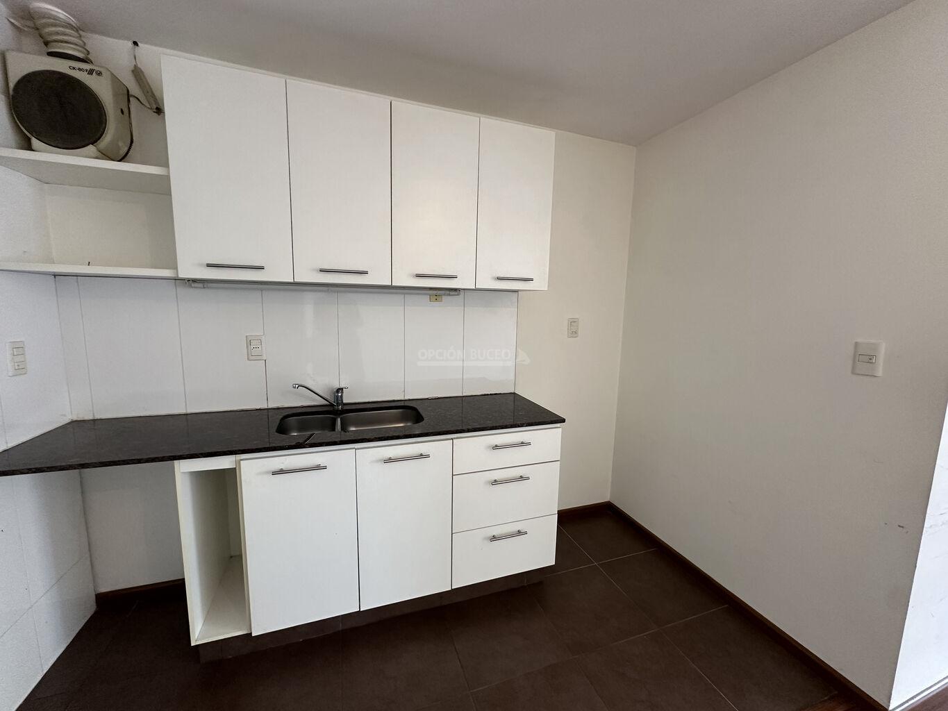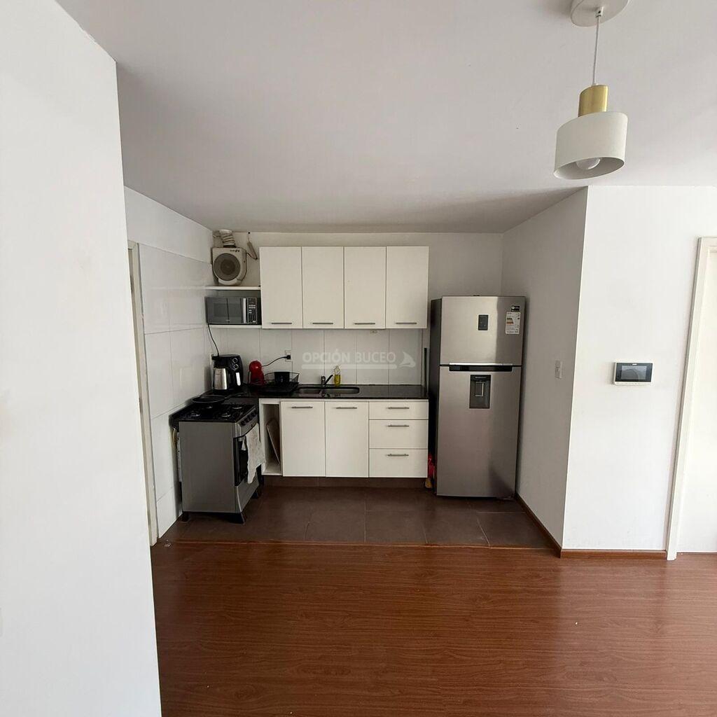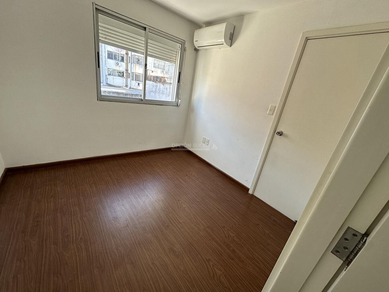 Alquiler de apartamento de 1 dormitorio en Pocitos próximo a Rivera y Ponce. La unidad se desarrolla en segundo piso por ascensor al contrafrente de edificio moderno con estilo. Cuenta con amplio living-comedor con cocina integrada tipo kitchenette, dormitorio con placar de buen tamaño, baño completo y espacio para lavarropas. El apartamento se entrega con 2 aires acondicionados colocados y calefón. Cuenta también con cochera fija incluida. El edificio cuenta con parrillero en azotea tipo barbacoa abierta y solárium.